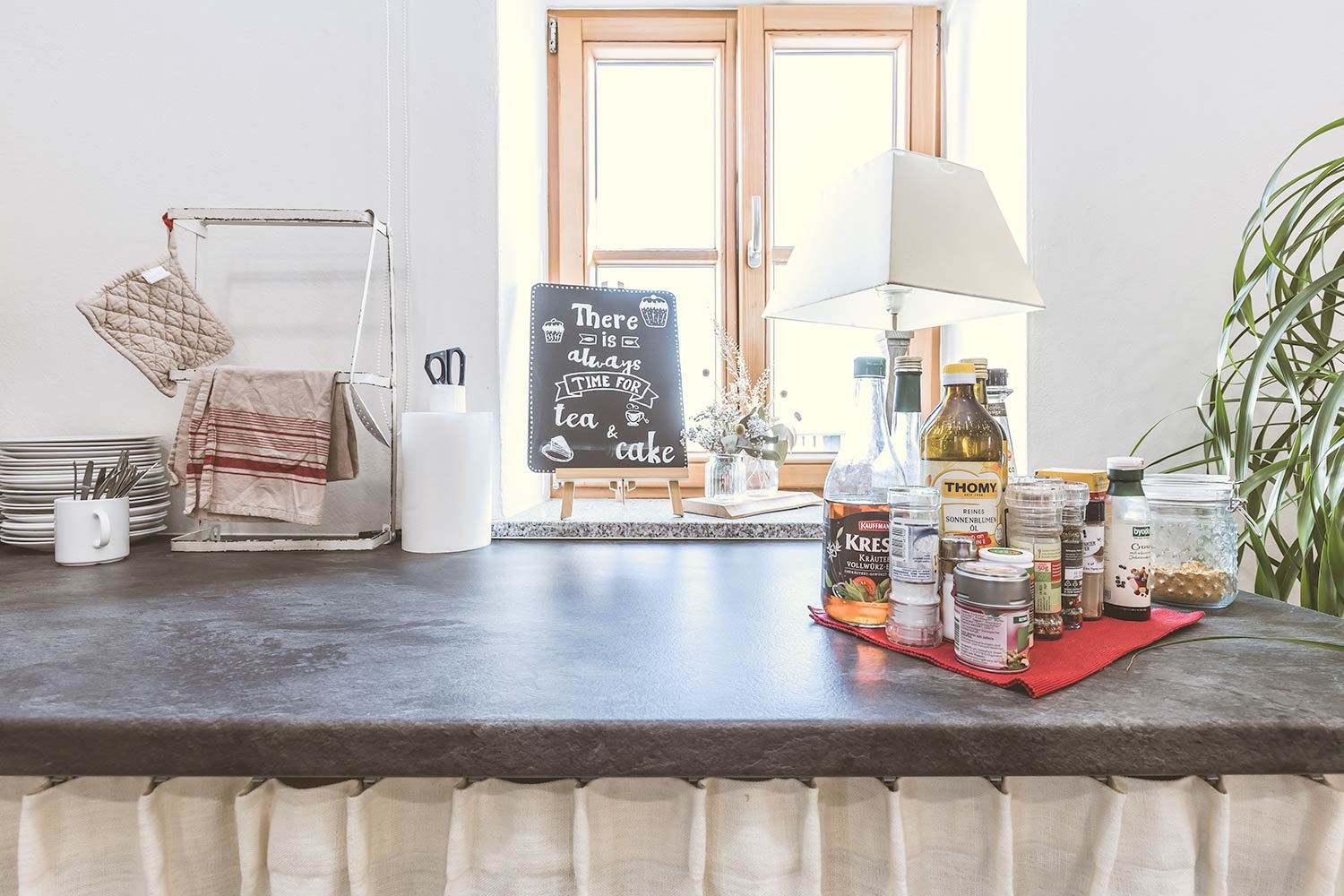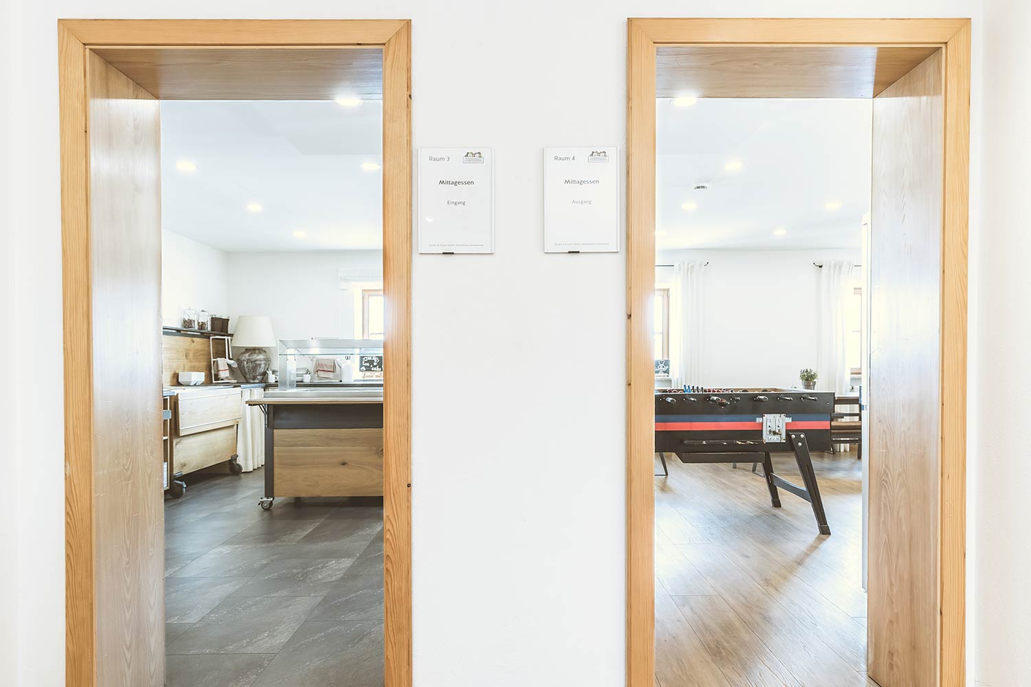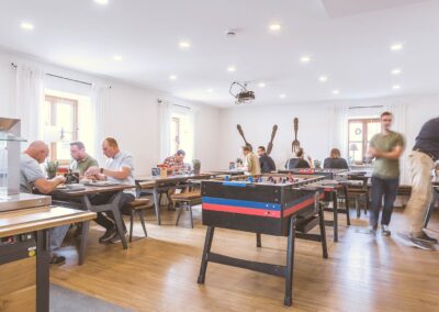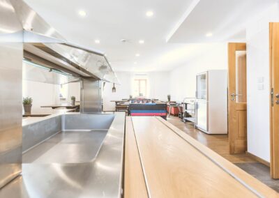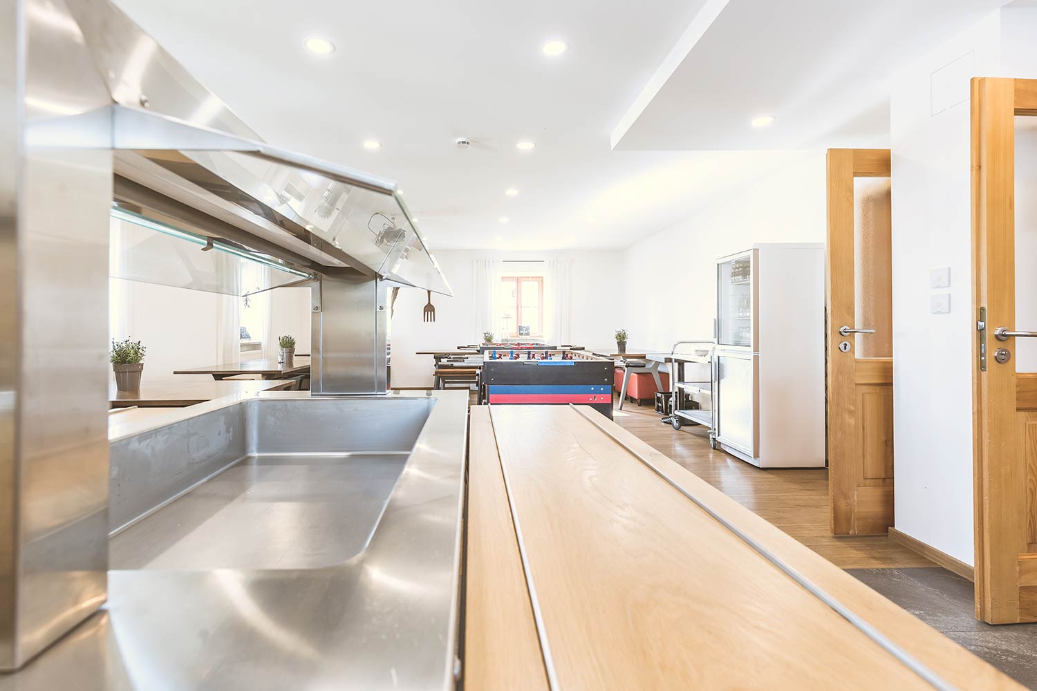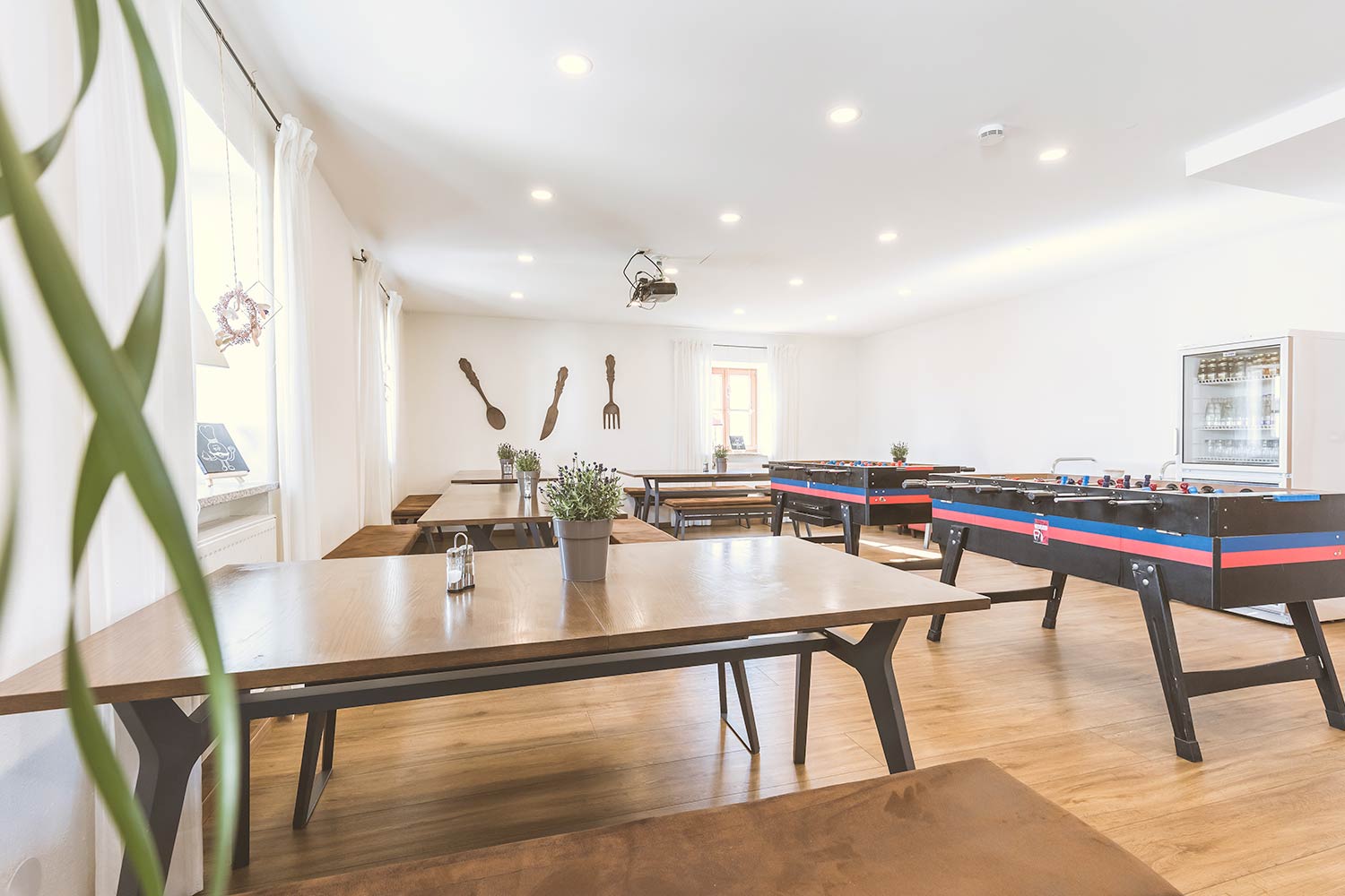 Raum-Ausstattung: Essenausgabe, Kühlschrank, Kühltheke, Beamer, 2 Kickerkästen (Leonhard)
