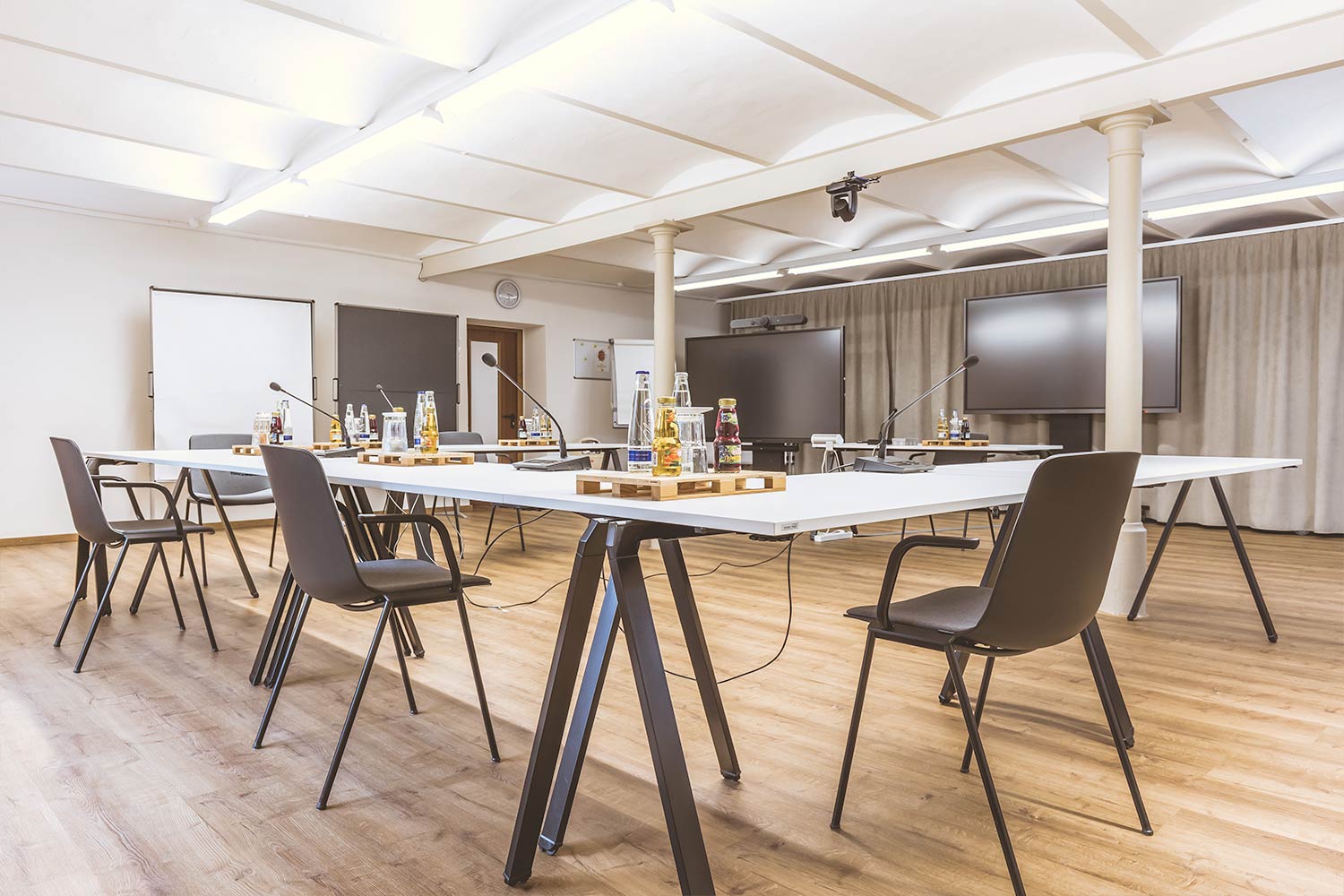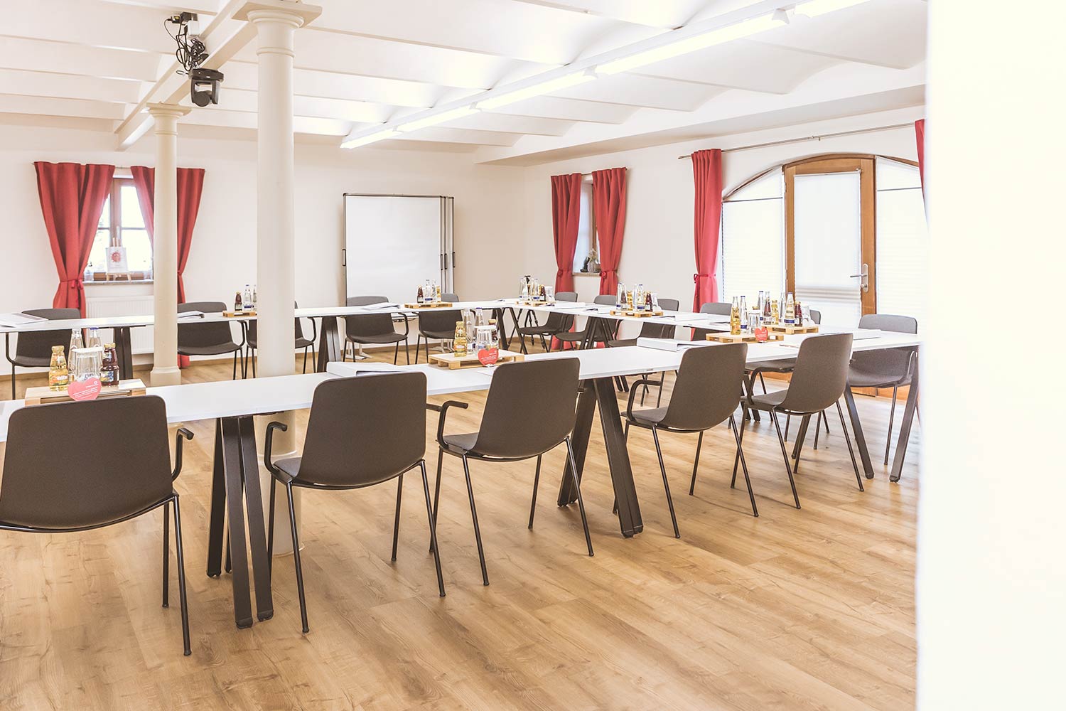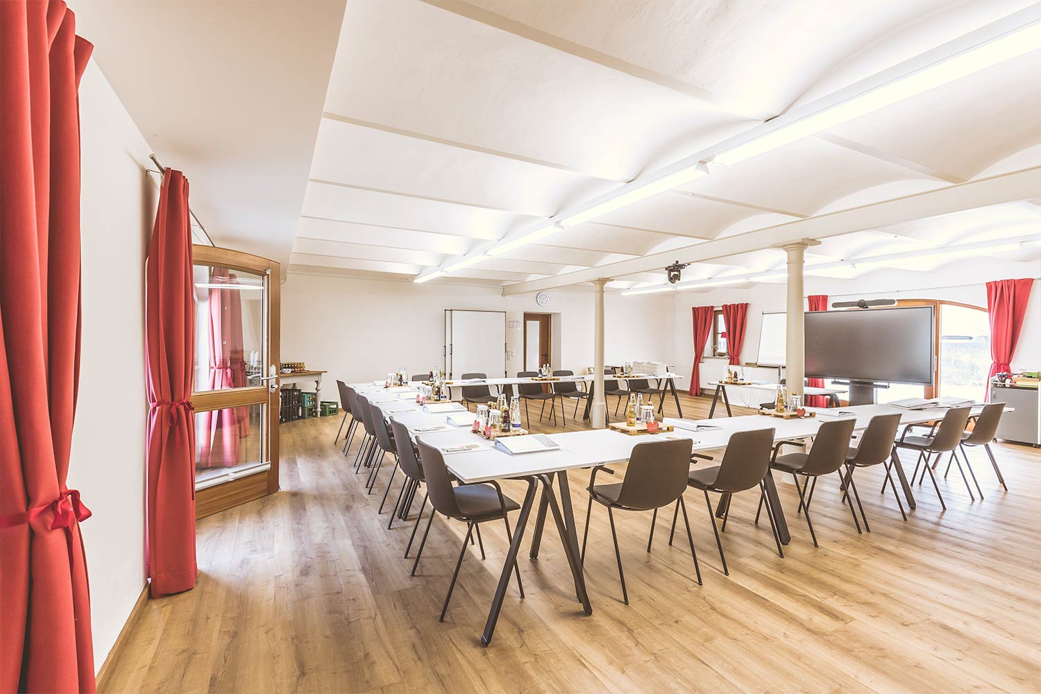 Bestuhlung & Personen: U-Form bis max. 24 Personen, Klassenzimmer bis max. 35 Personen, Reihenbestuhlung bis max. 50 Personen