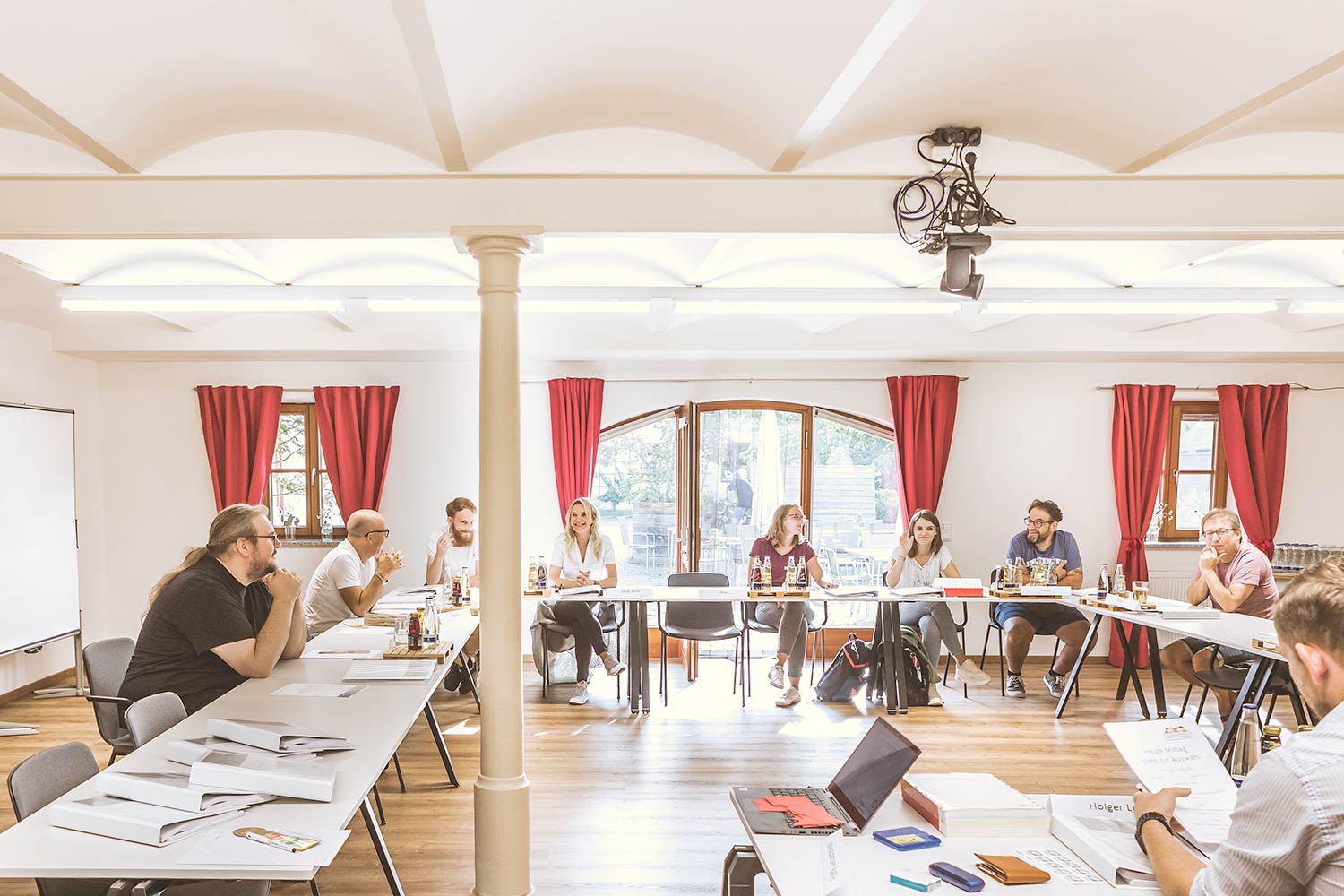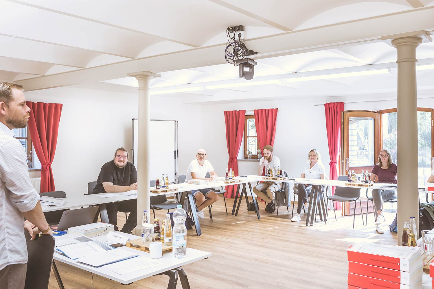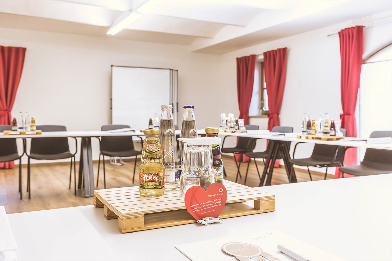 Bestuhlung & Personen: U-Form bis max. 24 Personen, Klassenzimmer bis max. 35 Personen, Reihenbestuhlung bis max. 50 Personen